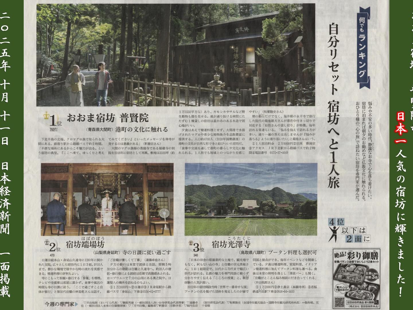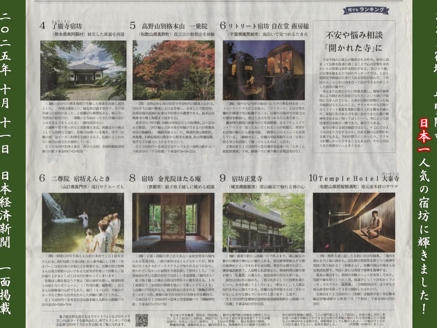 今年1番のニュースは何より、宿坊開山時、大きな夢であった 日本一の宿坊になれたこと。